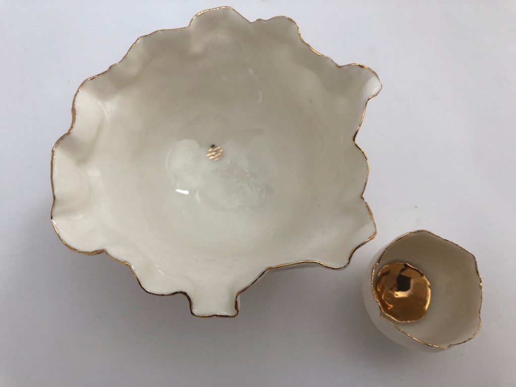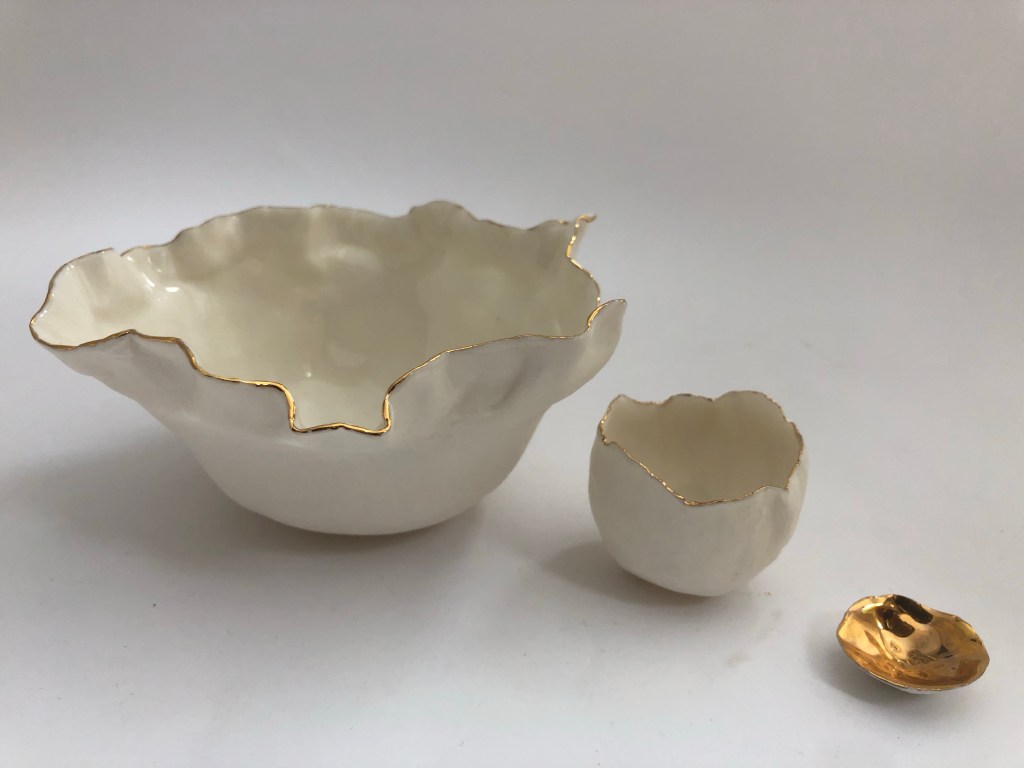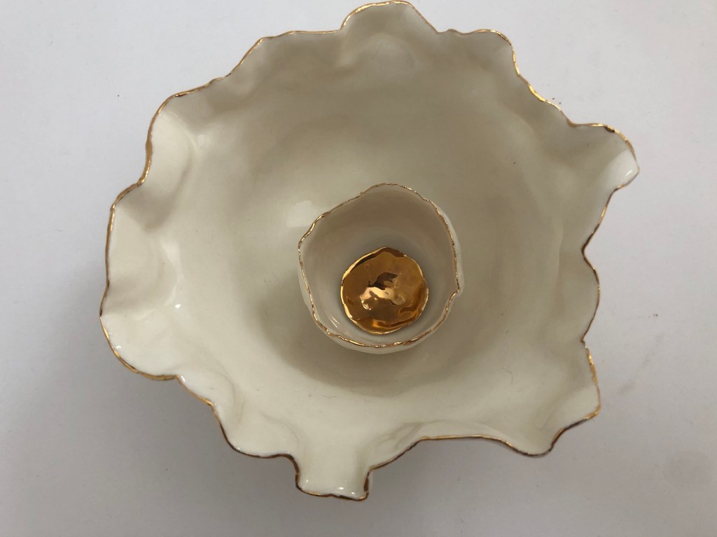 I decided to take part recently in The Artist Support Pledge . It’s an initiative to help support all Artists who have lost the ability to sell at Exhibitions and Gallerys during this difficult time. The Porcelain ceramic Piece with gold lustre glaze titled “Opening” 2019 , has three pieces, largest piece is 12cm diameter x 6cm. €200. Plus Post and packaging. Pm for more details.