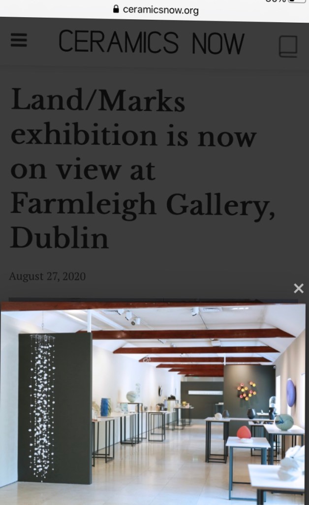 Wonderful to see an online feature about the Ceramics Ireland “Land Marks “ Exhibition in Farmleigh Gallery, Pheonix Park Dublin.