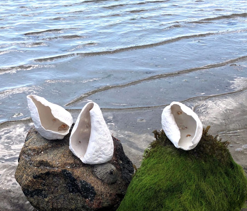 “Porcelain Conch Shells” each piece is approx 10cm x 10cm.