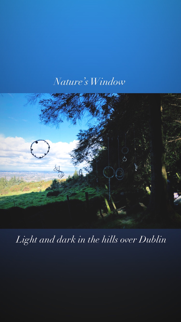 I was inspired to create a series of porcelain ceramic sculptures that I felt echo the natural beauty I see up in the hills overlooking Dublin. I made a video of my ceramic installation and called it “ Nature’s Window”. The birdsong was recorded during the early part of the lockdown this year in May 2020 in the exact same spot when I was struck by their beautiful calling above me. The tall trees stand all around like people gathering to watch a show. The natural opening in the trees struck me when i first saw it, it was like a window on the busy city of Dublin below. The trees on either side acting like guardians of the window. My series of sculptural pieces hang invisibly swaying and turning in the breeze, revealing glimpses of the city unfolding below us. I like to think that Natures Window is looking down on our daily lives, our daily problems and responding with birdsong. The porcelain pieces are circular in nature and this is a reflection of the circular nature of our lives and of nature itself which is constantly changing and turning , nothing stays the same. I liked that my sculptural pieces swayed and turned and adapted to the environment and added another dimension to natures own window which had been formed in the forest. I hope people are inspired when viewing the piece to stop and reflect on life and its simple beauty as i have done.