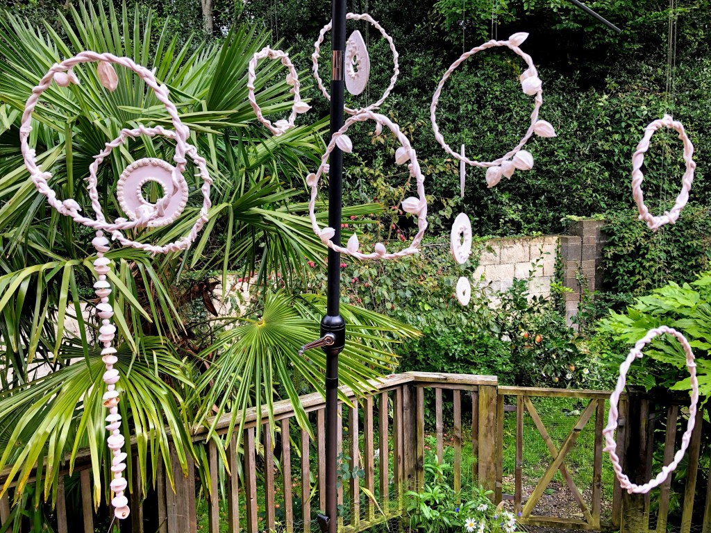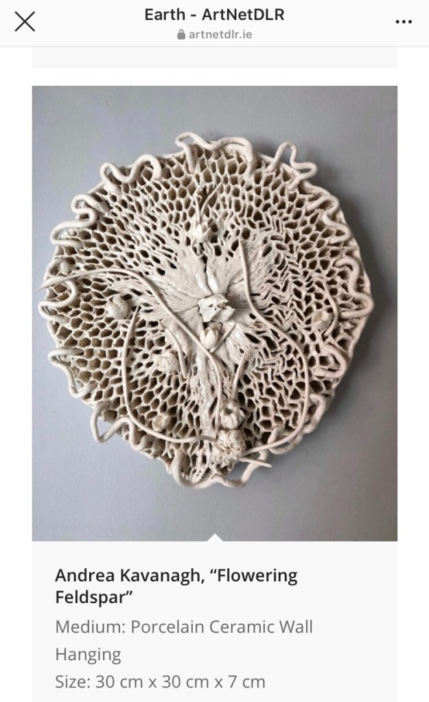 2020 was also the year I was chosen to create new porcelain ceramic work for Sculpture in Context 2020 – “Floral Portals” was created for The Botanic Gardens in Dublin and instead had to contend with hanging in my back garden under an exposed metal parasol ! Necessity is indeed the mother of invention. We had the opportunity to video the work and send it out but I really would love to see this work hung the way I had envisaged it hanging over the raised bed in the beautifully restored Alpine House , maybe one day 🙂
