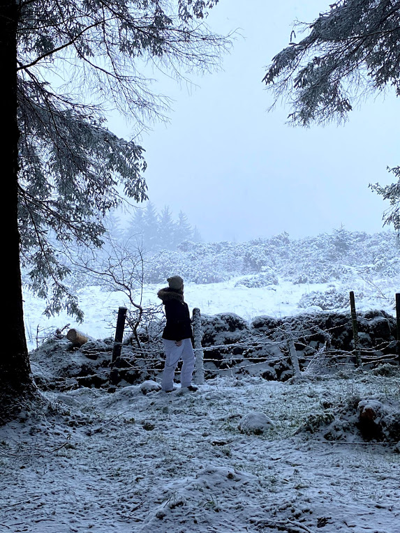 Last week we had snow and I took full advantage and headed to the hills to get inspiration and to walk in the white stillness. I love the snow, its a rare visitor in Ireland as we are protected from snowfall by the gulf stream. Warm air is carried up to Ireland on the gulf stream all year round and this gives us a warmer temperatures than other similar latitude countries. The Gulf Stream also ensures that the Irish coastline remains ice-free throughout winter. I live beside the hills so we are just above the snow line here and if Dublin gets any snowfall , we generally get to enjoy it !