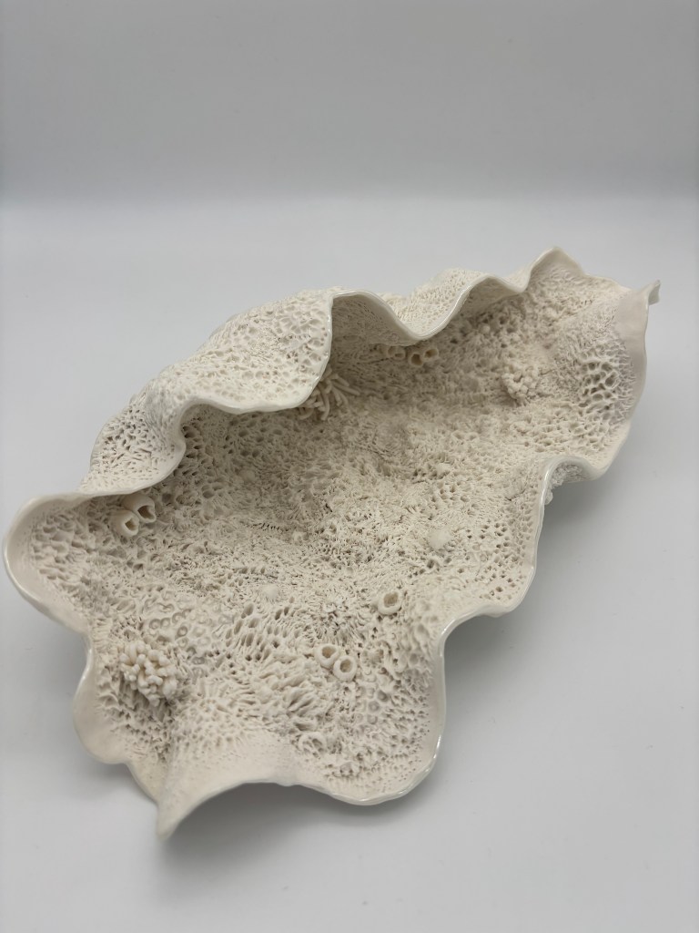 “Sea Shore traces I” Cairde Visual, Hamilton Gallery, Sligo 2025. porcelain and pearl lustre.